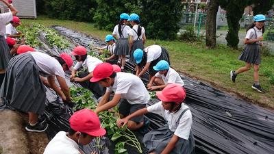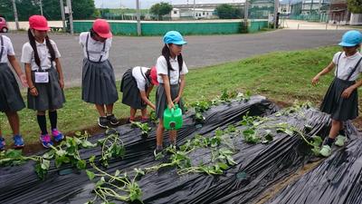 4年生は芋の苗を植えました。秋の収穫がとても楽しみですね。
