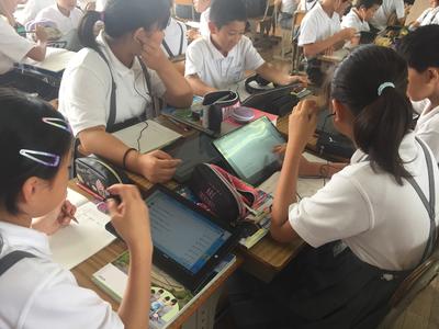 タブレット等を有効に活用した学び合いの授業が行われていました。