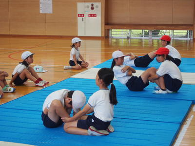 上体起こし頑張れー!1年生は初めてだったようで、起き上がるのにひと苦労していました。