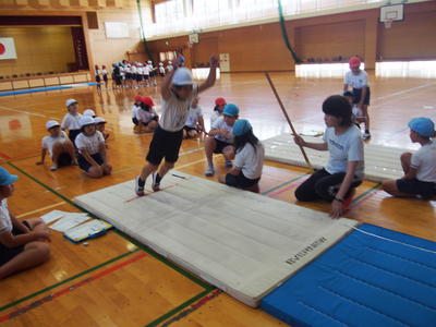 今日は、2年生と5年生がグループになって各種目に挑戦しました。
