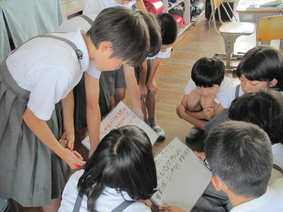 学級の旗に入れるものと縦割り班の遊びについて考えました。