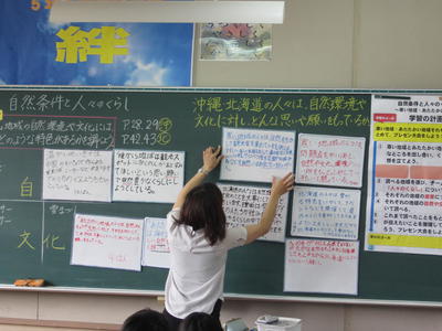 沖縄と北海道の人々が自然環境や文化についてどのような思いや願いを持っているのかをグループ毎に考えました。