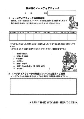 また、本日子どもたちにはプリントを配布しています。ご確認ください。お手元にない場合はプリントアウトして使われてください。→→→我が家のノーメディアウィーク.PDF