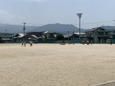 遠くてすみません。外では、ソフトボール投げと50m走が行われました。