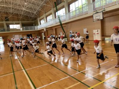 「ドレミファソラシド」に合わせて、20m走ります。1年生は最高で50回を超えていました。今後に期待が高まりますね。