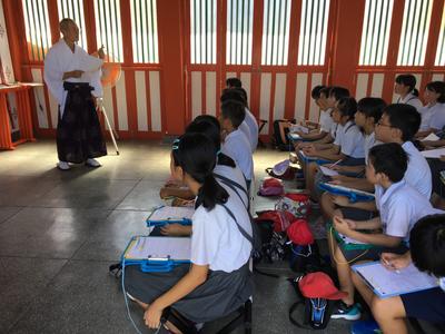 八代神社では、お参りをしてから宮司さんのお話を聞きました。