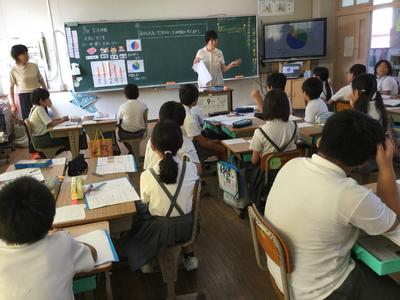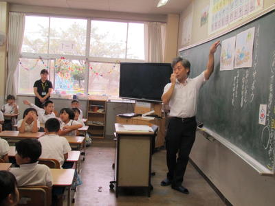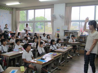 〇今日は英語アドバイザーの先生がいらっしゃって、5年生と6年2組の授業の様子を見られました。