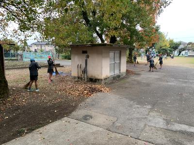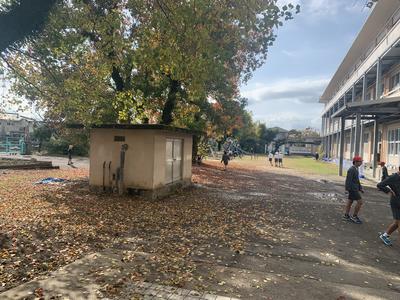 昼休みに、6年生が落ち葉掃きをしていました。ありがとうございます。
