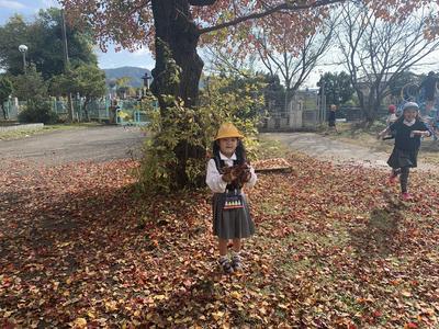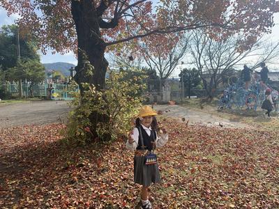 〇昼休みに中庭に出てみると、きれいな色の葉っぱがたくさん落ちていました。