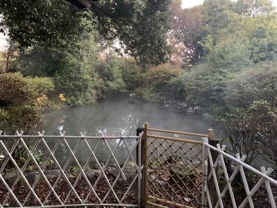 朝の7時頃、清明の池から湯気のようなけむりが出ていました。