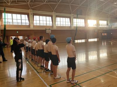 今日は運動場がぬかるんでいたので、体育館で練習がありました。