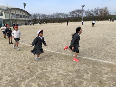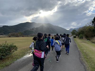 みんなでコースを1周回りました。たすきをつけて走りました。