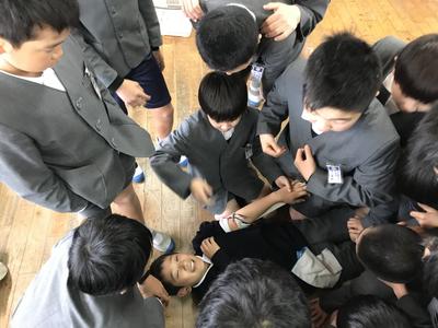 けが人と対応する人に分かれて実際にどうするかやってみました。