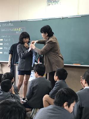 ◯保健室の石田先生と「けがの防止」について学習しました。