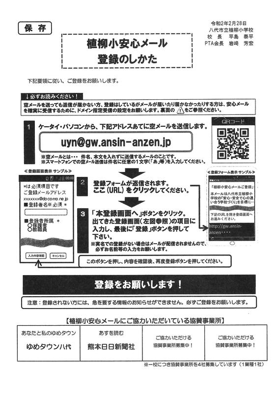 また、やむを得ない事情で登録ができない方につきましては、植柳小(0965-35-1933)までご連絡ください。