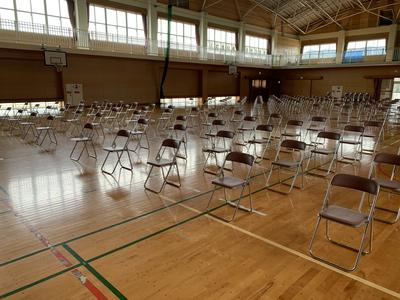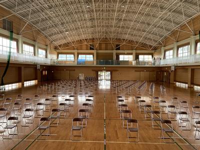 新型コロナウイルス対策のため三年生は男女別れて過ごしました。