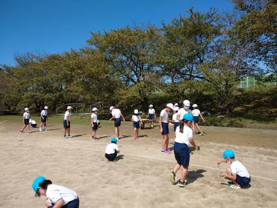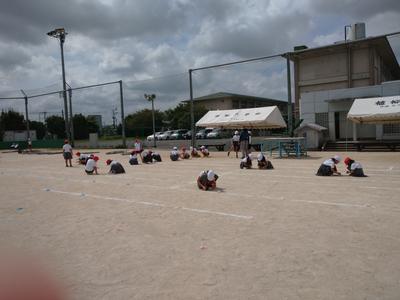 練習が終わった後、みんなで運動場の草引きをしました。