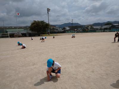 1・2年生は運動場の石拾いを頑張りました。
