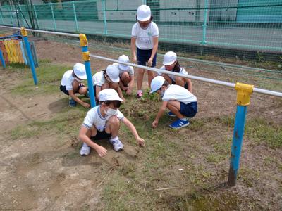 3・4年生は運動場の周りの草引きを頑張りました。