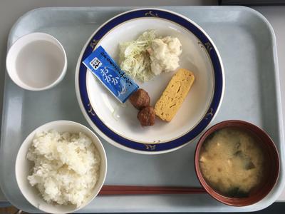 麦ご飯、おでん、わかめの酢の物、ふりかけ、牛乳(590kcal)