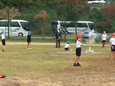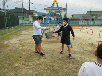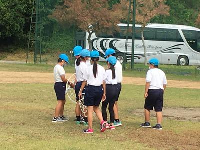 運動場で「ベースボール型」のボール運動を行っていました。