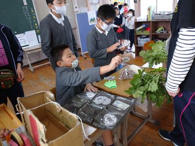 あすなろ2組の子供たちが一生懸命育てた野菜を昼休みに販売しました。
