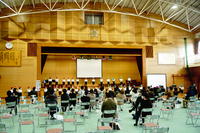 5年生が体育館のシートや椅子を並べました。