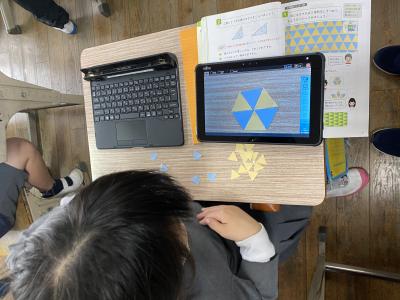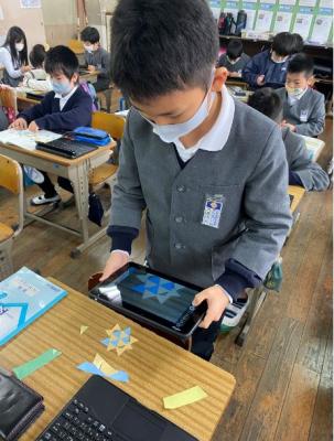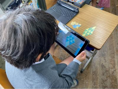 その後、できた形をタブレットで写真に撮り、みんなに紹介しました。
