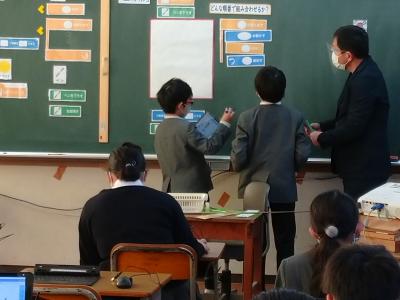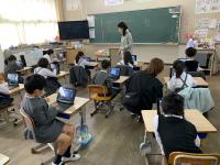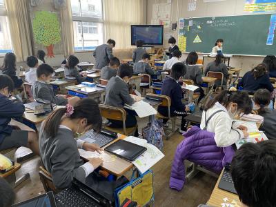 また、5年生は社会の時間にもタブレットを使って調べ学習をしていました。