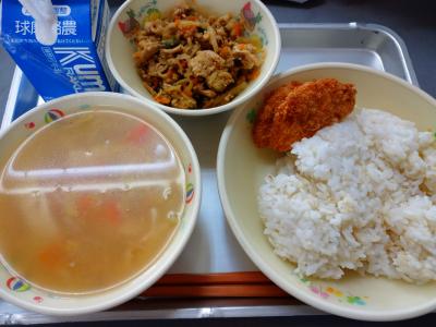 牛乳、ゼリーフライ(おからコロッケ)、煮ぼうとう、かてめし。
