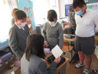 委員会活動の時に、情報委員会のみんなが掲示物を貼り替えたり、放送の仕方の確認をしたりしました。