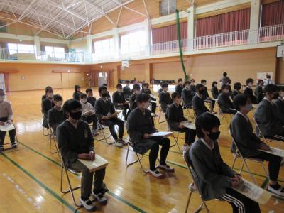 6時間目に第三中学校の先生が来られて説明会がありました。
