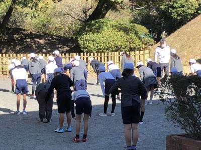 【4年生 持久走大会の練習・・・準備運動中!!】