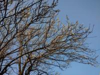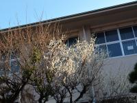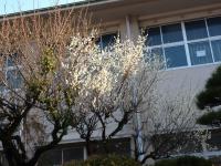 学校の正門と理科室前のいずかし岩石園の近くに梅の花が咲いています。
