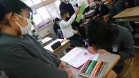 〇5時間目に5年2組で図画工作科の研究じゅぎょうがありました。