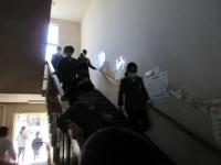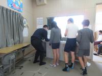 その後、津波発生(想定)による避難指示を受けて、校舎3階へ避難しました。