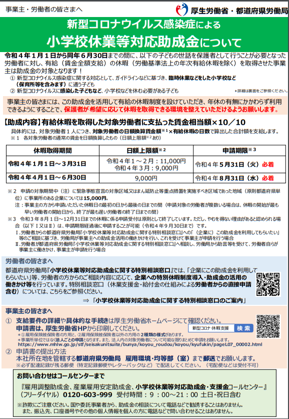新型コロナウイルス感染症による小学校休業等対応助成金について
