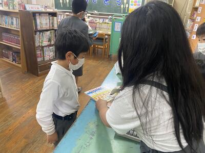 図書室では、図書委員会の子どもたちが