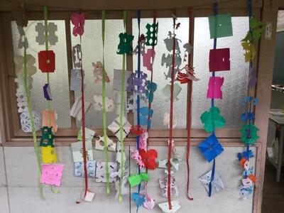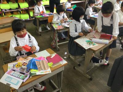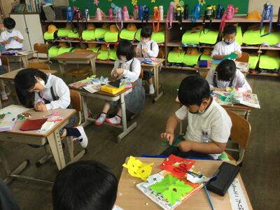 1年生は図工の時間に飾りを作りました。