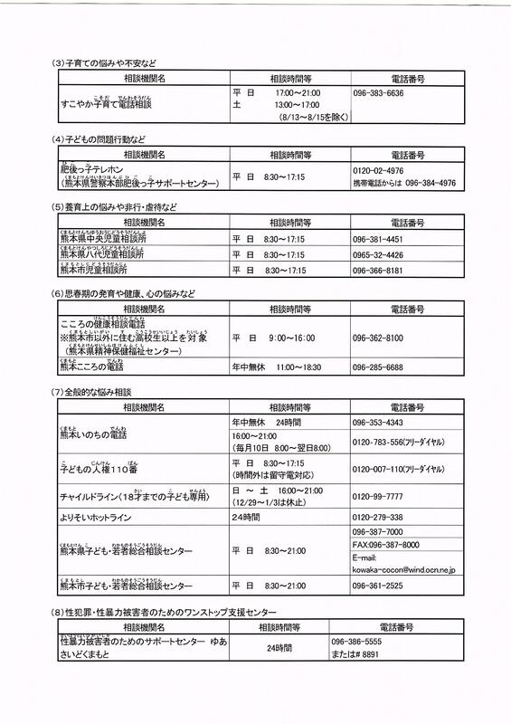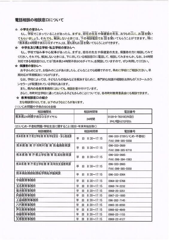熊本県教育委員会より電話相談の