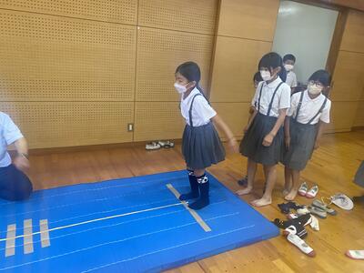反復横跳びと立ち幅跳びの練習を