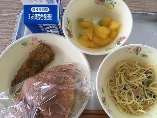 ミルクパン、フレンチサラダ、スパゲティー、牛乳(673kcal)