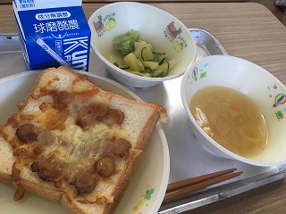 | ☆9月18日火曜日 《献立》 ★麦島幼稚園ふじ組のリクエスト給食 ・ピザトースト、マカロニスープ、菜果サラダ、牛乳 《献立ひとくちメモ》 ・キャベツには、春が旬のものと冬が旬のものがあります。冬に収穫される冬キャベツは、巻きがしっかりしていて、加熱調理しても煮崩れしにくいです。春に収穫される春キャベツは、みずみずしく柔らかいのでサラダなど生で食べる料理に適しています。 【3年2組の給食の様子】 ・ピザトーストが大好きな子供たちが多かったです。美味しそうに、ほおばっていました。 |