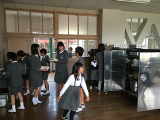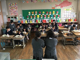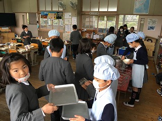 【6年生の給食の様子;小学校最後の給食でした】 |