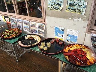 【5年生の給食風景;ALTの先生といっしょに】 |
