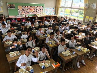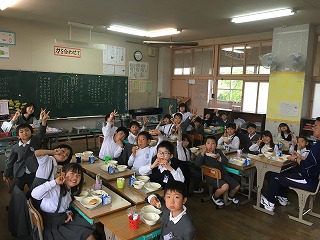| ☆4月24日(月) 《献立名》 ・麦ごはん、わかたけ汁、鶏のジャポネソース、ごまあえ、牛乳 《献立ひとくちメモ》 ・わかたけ汁は、春先の新わかめとたけのこを使ったすまし汁です。わかめとたけのこはとても相性が良く、2種類の新芽を使ったすまし汁は、食卓に春の香りを届けてくれます。このように同じ季節に出回る旬のもので、料理の材料として相性がよい食材のことを、日本料理では「出会い物」とよんで、昔から大切にしていきました。 【旬の食材に舌鼓を打ちました】 |