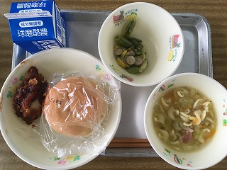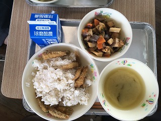 | ☆4月27日(木) 《献立名》 ★ふるさと元気っこメニュー ・セルフたけのこごはん(ごはん、セルフたけのこごはんの具)、かきたま汁、ちくわの磯部あげ、牛乳 《献立ひとくちメモ》 ・「ふるさと元気っこメニュー」では、毎月19日の食育の日にちなみ、熊本県や八代地域の産物や郷土料理、旬の食べ物を使った特色ある献立を実施し、子どもたちに郷土のすばらしい食文化を伝えています。 【ふるさと元気っこメニュー】 |