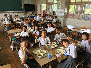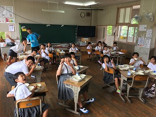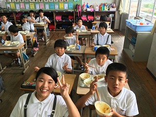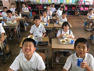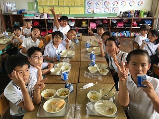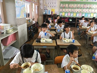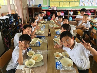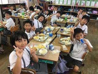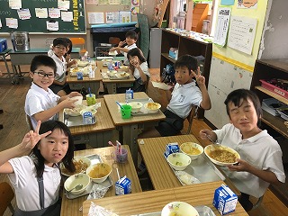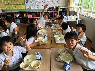 | ★4年1組の給食の様子です 【給食の時の子どもたちの笑顔は素敵です】 |