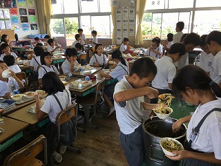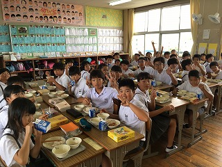 | ★1学期最後の給食でした。 【2年1組の給食の様子】 【2年2組の給食の様子】 【1年1組の給食の様子】 【1年2組の給食の様子】 ★給食センターのみなさん、おいしい給食をありがとうございました。 |