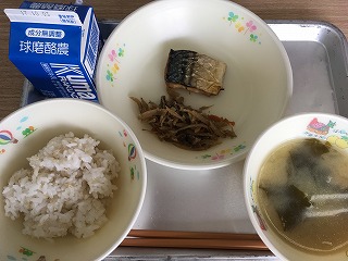 | ☆9月26日(火) 《献立》 ★朝食メニュー ・麦ごはん、さばの塩焼き、みそ汁、きんぴらごぼう、牛乳 《献立ひとくちメモ》 ・今日は、朝食メニューです。規則正しい食習慣を身につけるためには、まず食事は一日3回、できるだけ決まった時間に食べることが大切です。また、朝食は、一日のはじまりに必要なエネルギー源となります。しっかり朝食を食べて、一日を元気にスターとさせましょう。 【理想的な朝食メニューです】 |
